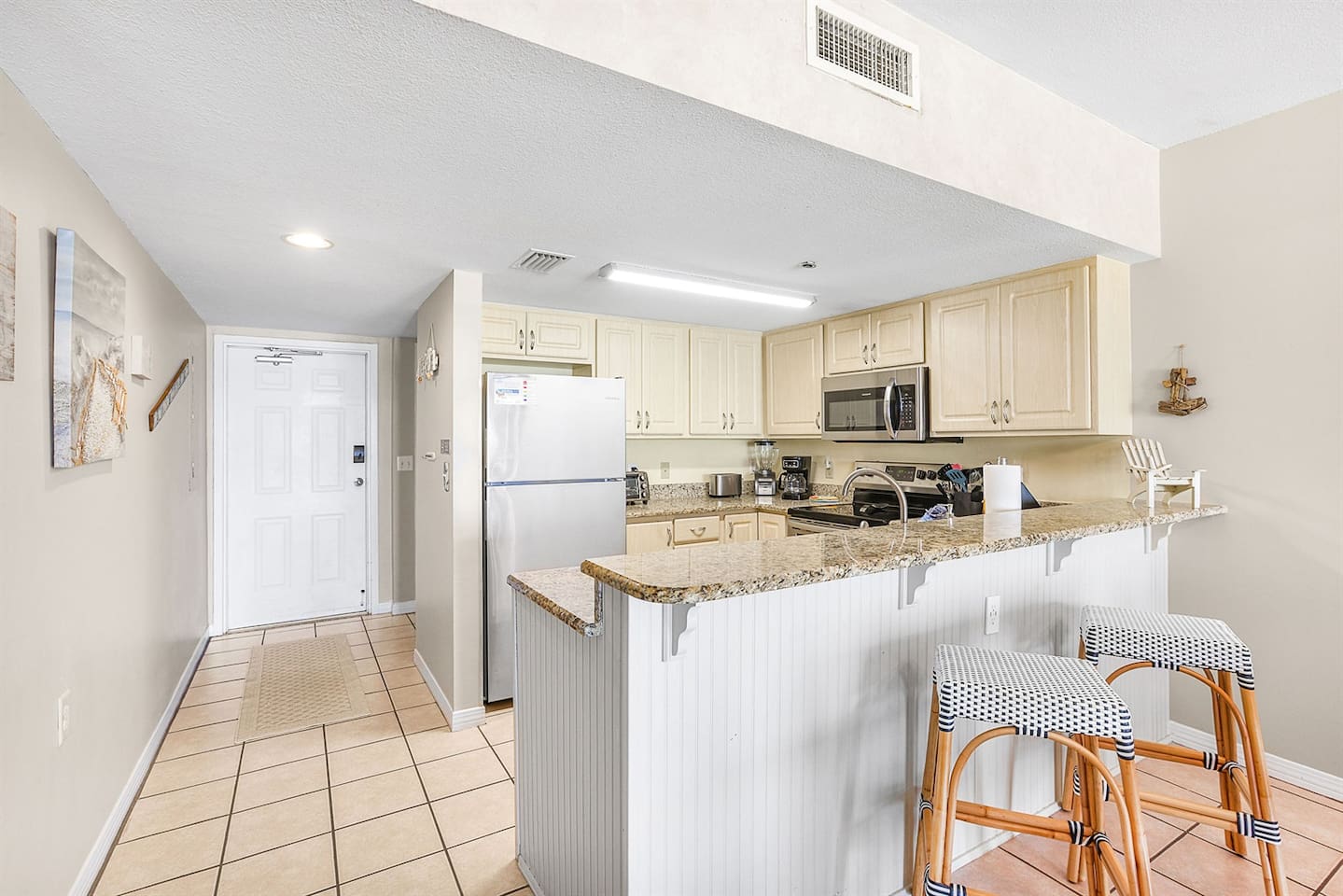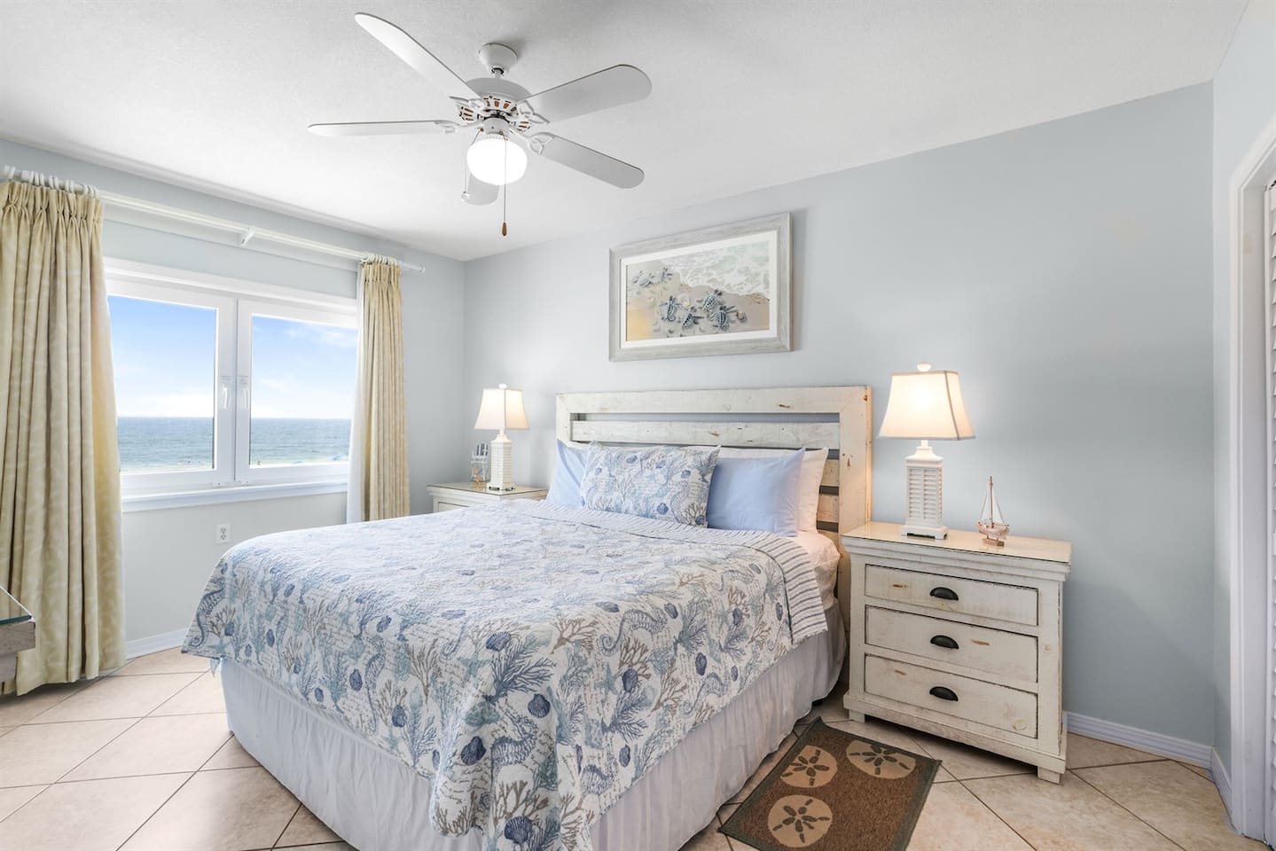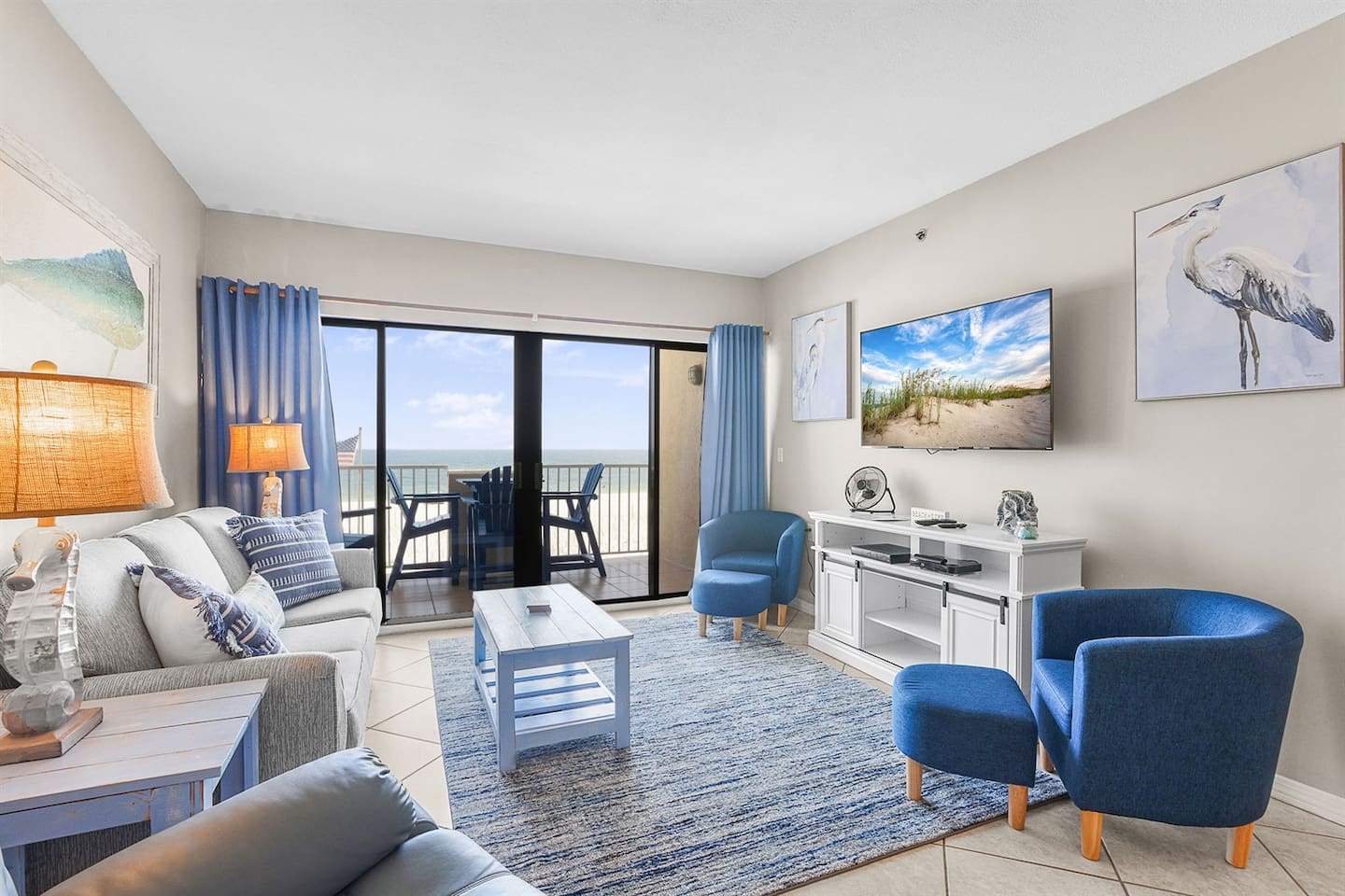 Just steps from the sugar-white sands and turquoise Gulf waters, our condo offers stunning views from the living room, dining area, kitchen, and master bedroom. The living room boasts wall-to-wall Gulf views, while the primary suite includes a walk-in shower. Conveniently located 1.5 miles west of The Hangout and near great restaurants. One parking pass is included, and the beach is only moments away for endless sun, surf, and relaxation.
