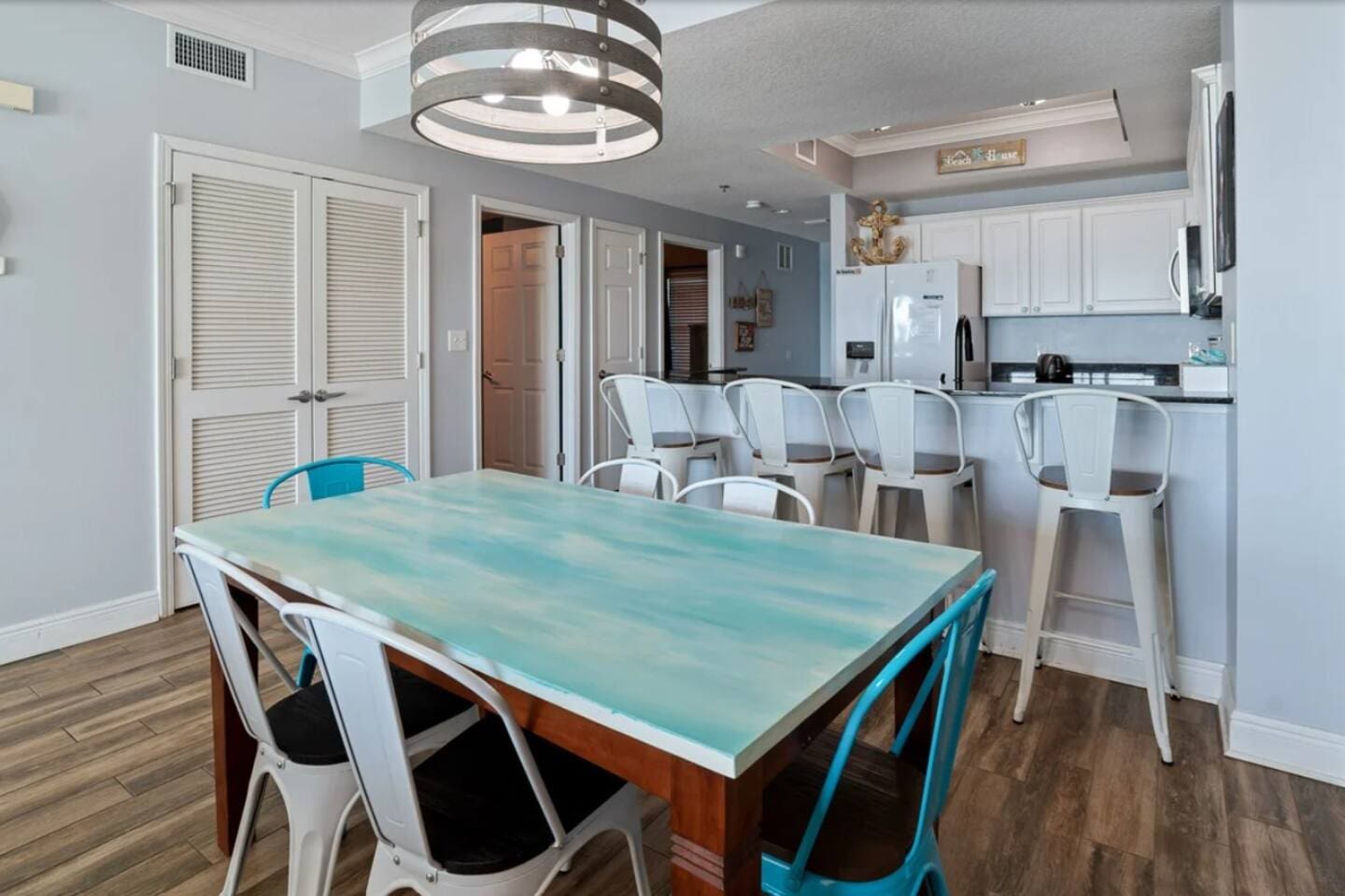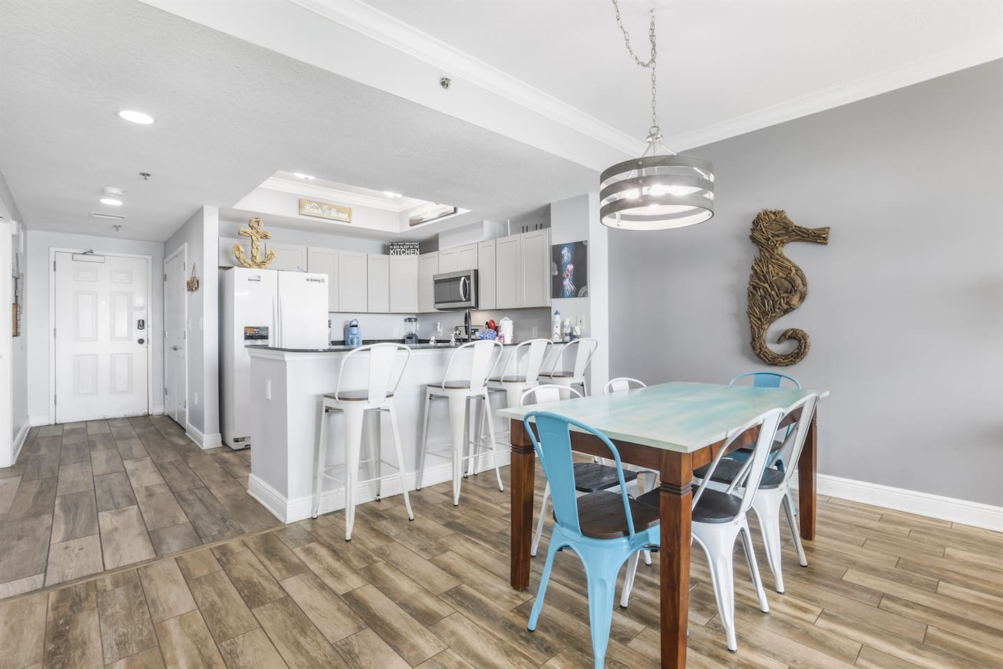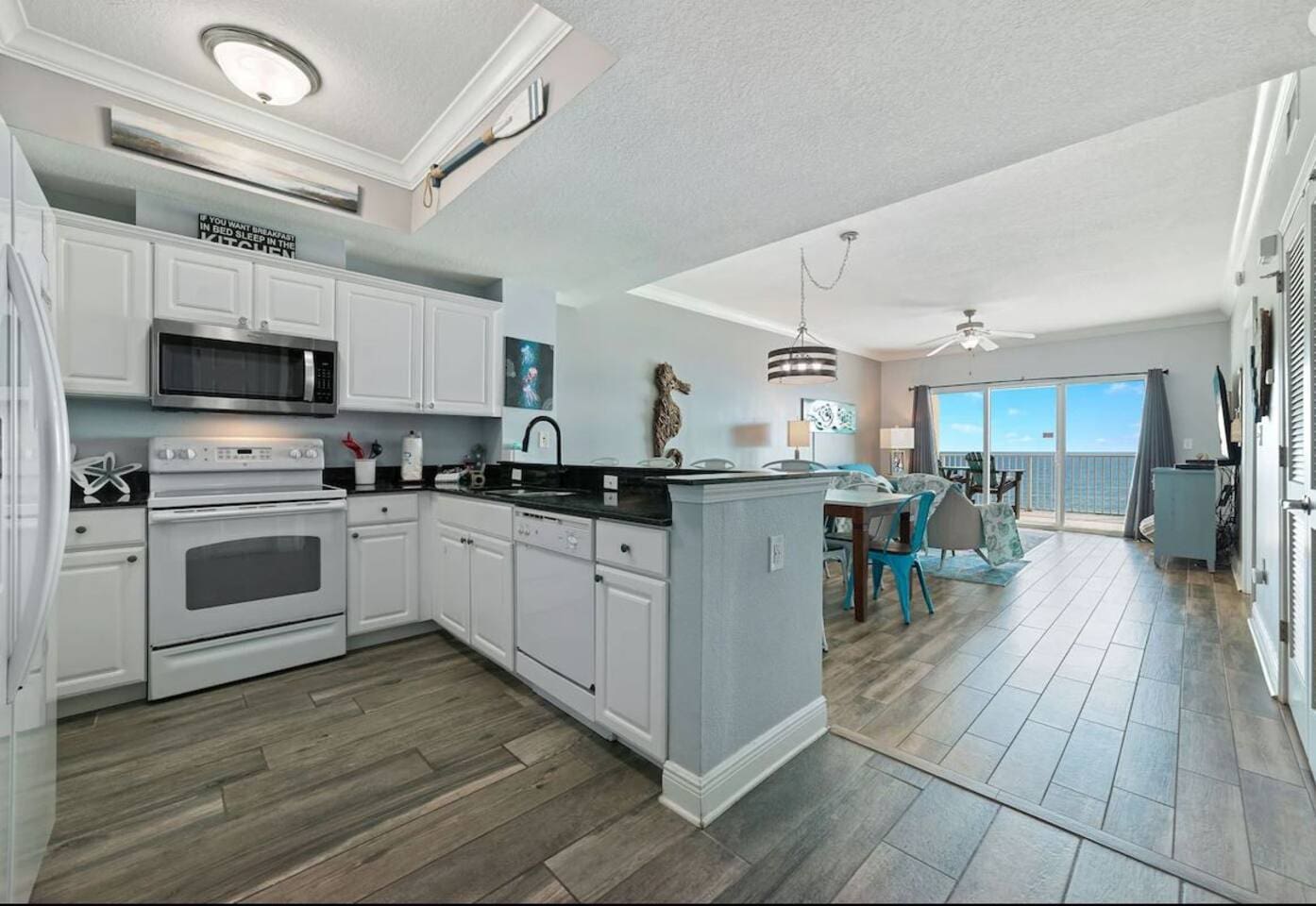 Waves of Happiness is a 2-bedroom, 2-bathroom condo that accommodates up to 6 guests, located directly on the Gulf of Mexico. Enjoy the ultimate beach getaway at this beautiful condo. Step inside to stunning Gulf views through large windows and your private balcony. The spacious open concept living and dining area is perfect for relaxing and spending time with loved ones. Centrally located near restaurants, shopping, and activities.